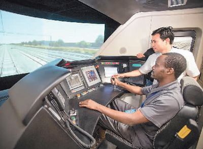 日前,來自泰國(guó)、斯里蘭卡、老撾等13個(gè)國(guó)家的63名鐵路管理人員來到武漢高鐵訓(xùn)練段進(jìn)行參訪交流活動(dòng)。在“一帶一路”背景下,2015年開始武漢高鐵訓(xùn)練段已舉辦了泰國(guó)、老撾等14批涉外鐵路技能培訓(xùn)班,培訓(xùn)涉外學(xué)員400余人次。圖為來自肯尼亞的賈斯特斯·卡洛·姆文加在高鐵模擬駕駛倉(cāng)內(nèi)體驗(yàn)實(shí)際操作。 新華社記者 肖藝九攝